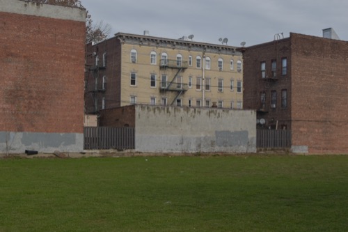 This vacant grass lot was for many years a large strip mall that was anchored by a ShopRite Supermarket. When ShopRite moved to the next town over, the strip mall fell into disrepair. Recently the entire shopping complex was demolished and replaced with a horrendous warehouse, the horrors of which I have included as photographs further below.