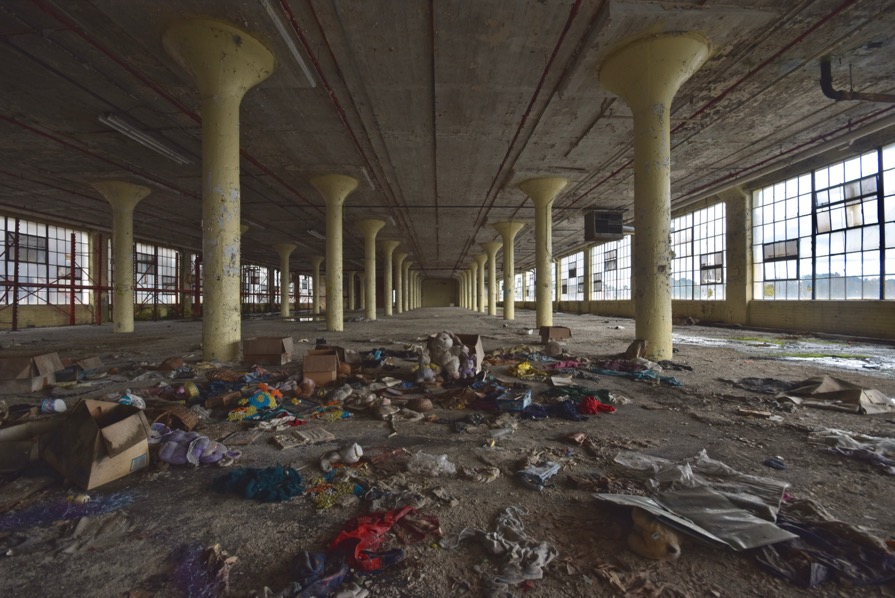 A few areas of the factory had some old toys and clothing scattered about the floor. Most likely remnants and belongings from various vagrants whom call the empty building home from time to time.