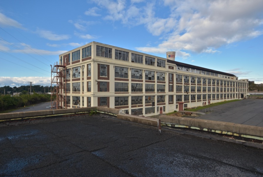 Standing atop the roof of the power plant building in-order to snap a flick of the main Dixie Cup factory. Like many large factories of its time, Dixie Cup was at one point powered by its own onsite facility. Unfortunately, at the time of my exploration, the plant was largely devoid of any interesting equipment. However, a neat yet annoyingly flooded steam tunnel did connect the plant directly to the main factory, which I suspect holds the record of the shortest steam tunnel I've ever traversed.