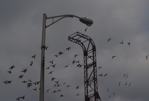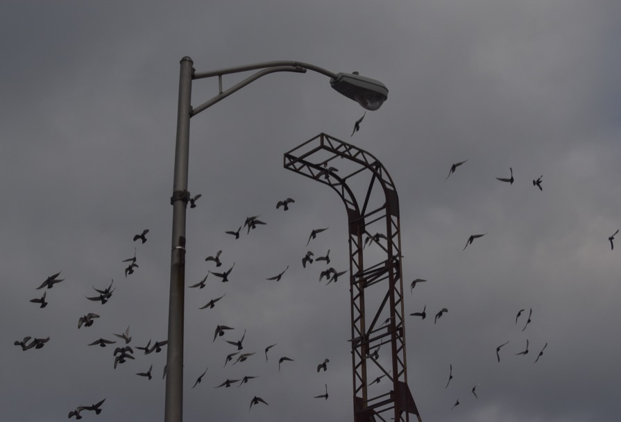 A few water fowl bathe in the newly installed retention pond behind the modern mega warehouse. From this angle you can see just how appalling and ridiculous the white wall is, hell, even the line of seagulls perched atop the wall see it as only a facade to shit down. The two houses to the right of the wall have effectively been mentally demolished, hidden away behind a barrier, isolated from the rest of town. But hey, that's progress?