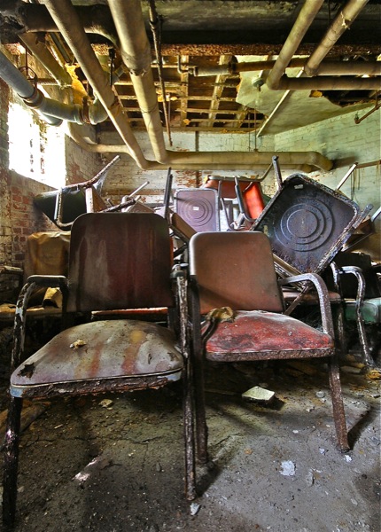 Beside the caskets left in the basement, some other rooms where used to store chairs and other obsolete furnishings.